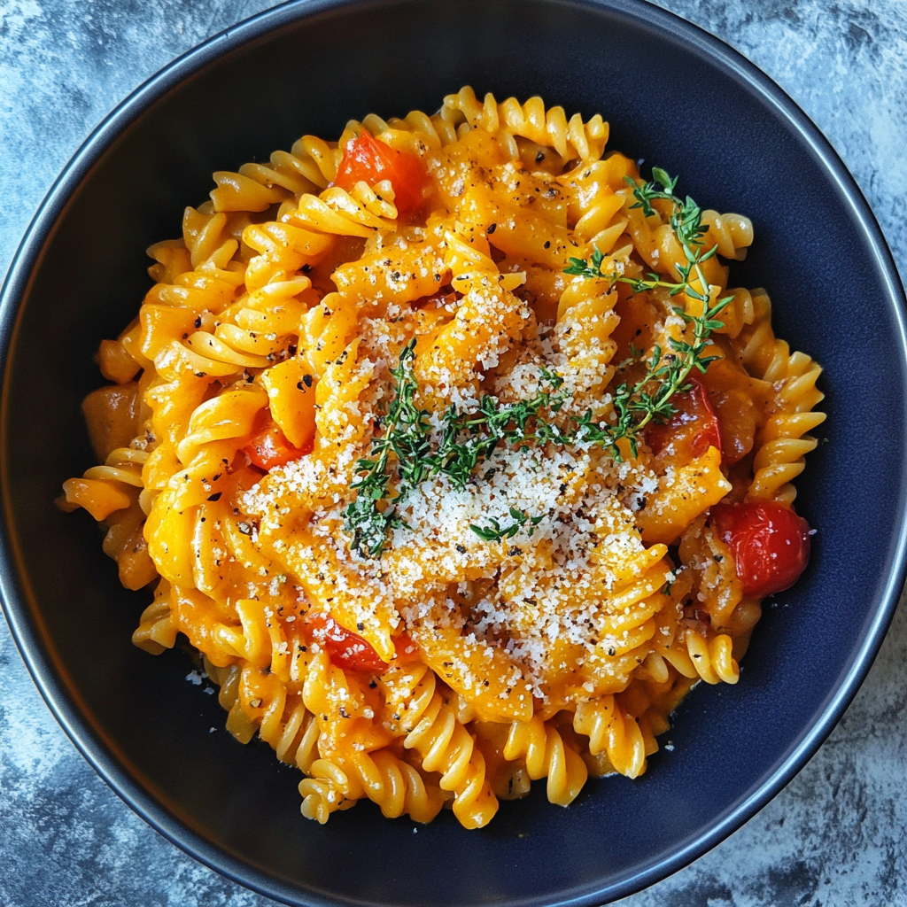 Butternut squash pasta sauce is a creamy vegan sauce made primarily from roasted butternut squash, tomatoes, and spices that create a rich flavor profile perfect for pasta dishes.