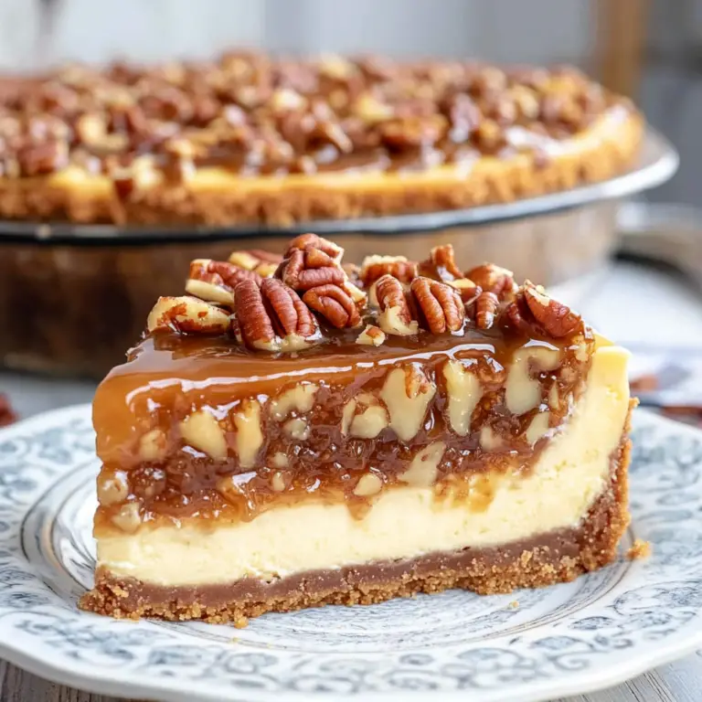 Indulge in Caramel Pecan Pie Cheesecake Delight