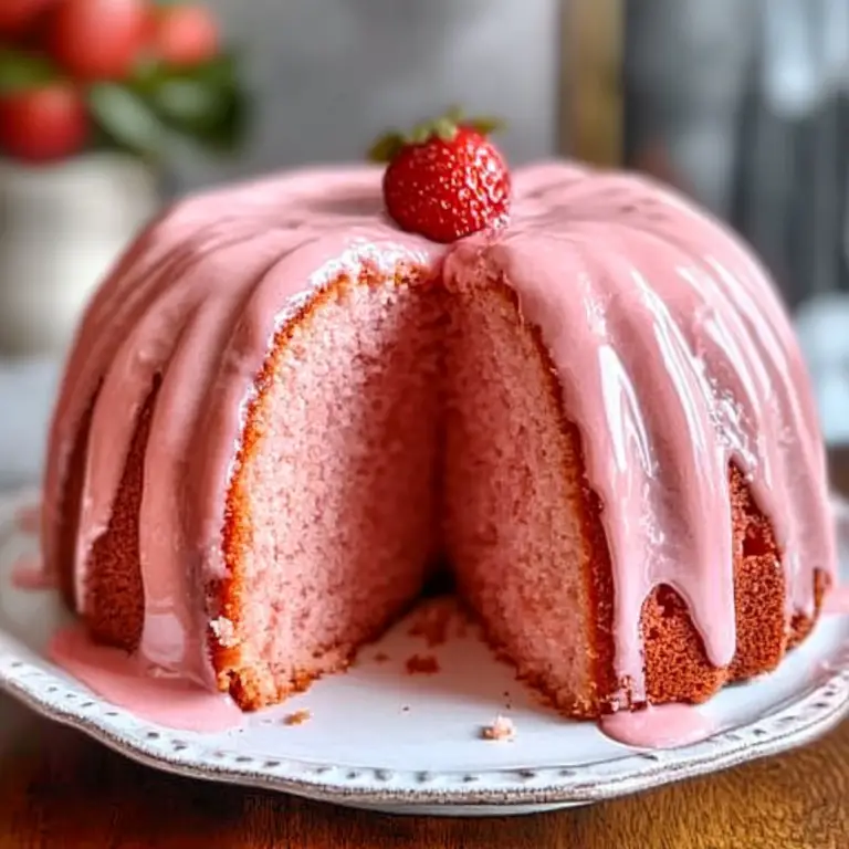 Strawberry Buttermilk Pound Cake with Pink Glaze