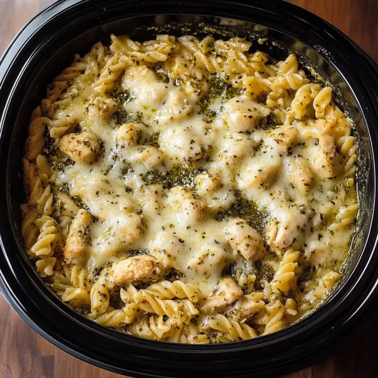 Irresistible Slow Cooker Pesto Mozzarella Chicken Pasta