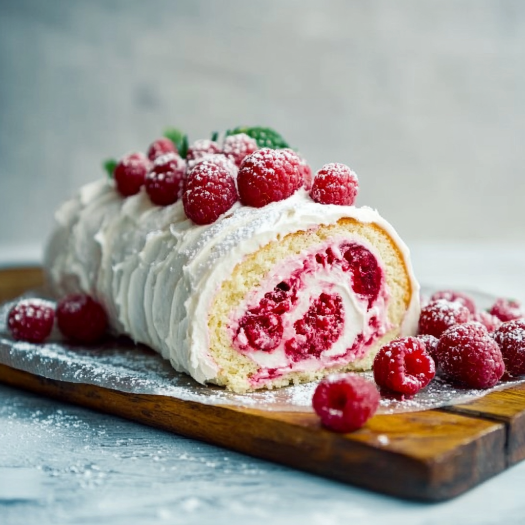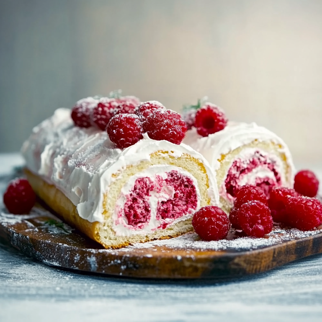 Celebrate special occasion with our tasty special occasion Raspberry Cake Roll, an amazing twist on the classic holiday treats. This delightful dessert features a light and fluffy vanilla sponge cake rolled up with a creamy cream cheese filling, raspberry jam, and fresh raspberries that are bursting with flavor. Perfect for festive gatherings or as a special treat for your family, this cake roll is sure to impress.
