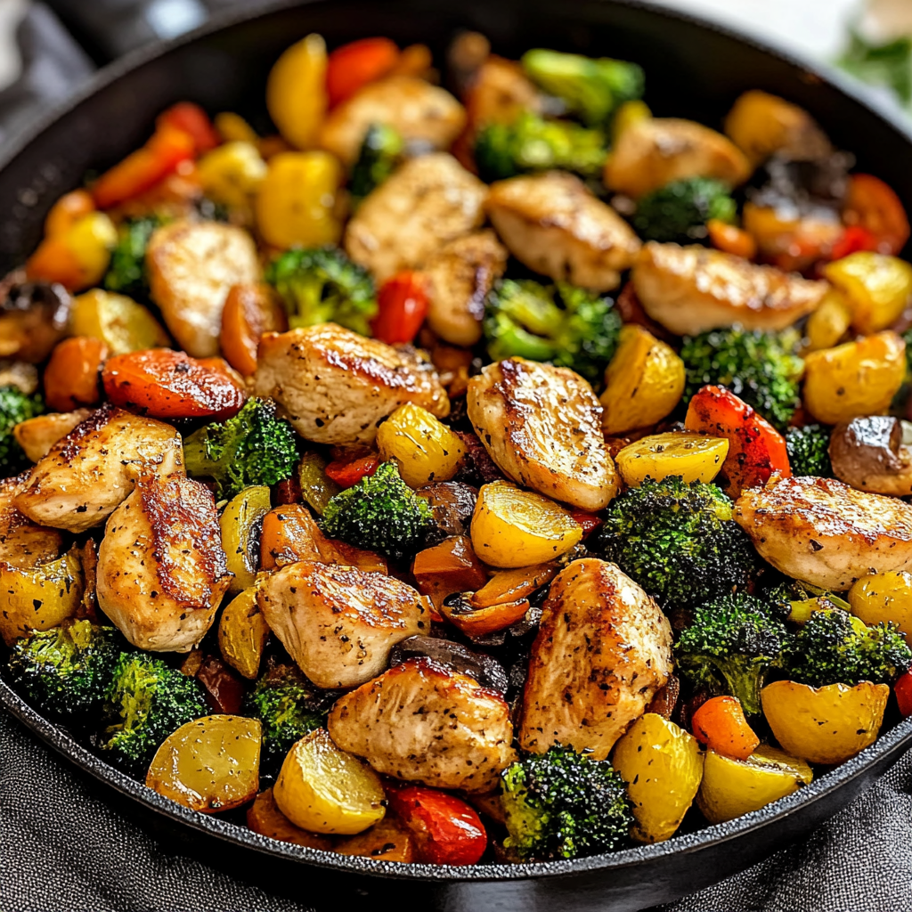 Healthy Chicken and Vegetables Skillet is a delightful dish that brings together tender chicken and vibrant vegetables in one easy-to-make skillet. Perfect for weeknight dinners or meal prep, this recipe offers a healthy balance of protein and nutrients. With its flavorful seasoning and colorful presentation, it’s sure to please the whole family while keeping dinner time fuss-free.