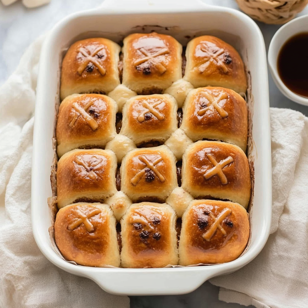 These Hot Cross Buns are a beloved Easter classic that can be enjoyed year-round. With their sweet, fluffy texture and aromatic blend of spices, these buns are perfect for breakfast, brunch, or a delightful snack. Topped with a signature cross and filled with plump raisins, they offer a comforting flavor that brings warmth to any occasion. Whether shared during festive celebrations or savored alone with butter, these buns will become a favorite in your home.