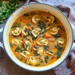 One Pot Vegetable Tortellini Soup is a comforting dish made with tortellini, fresh vegetables, and savory broth, all cooked in one pot for easy preparation.