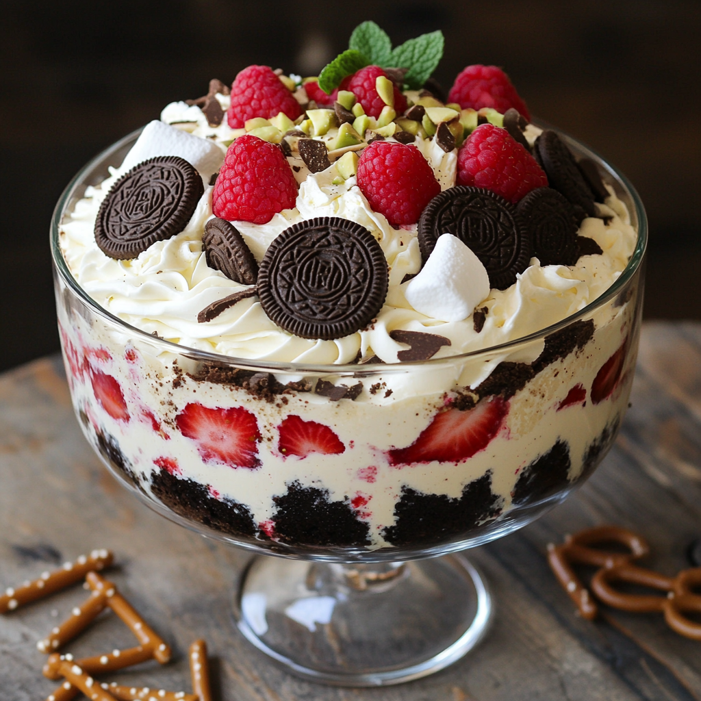 The Wild Forest Classic Dirt Pudding Cake is an irresistible dessert that combines creamy pudding, crushed Oreos, and fresh berries. Perfect for parties, family gatherings, or a cozy night in, this fun and delicious dessert offers a delightful twist. Its unique presentation and rich flavors make it a standout choice for any occasion.